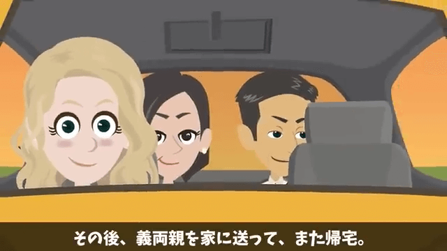 義母は「正直、孫の顔は見たかったけど、息子の勝手で孫を不幸にするわけにはいかないものね」と言います。 それから主人公は義両親を義実家まで送り、また自宅に帰ってきました。