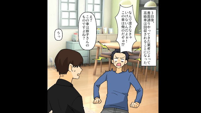 今回は『元夫「車のローン払ってね?(笑)」→事実を伝えて連絡を無視し続けた結果』を紹介します。 借金を返済できず、車を担保として差し出すことを貸金業者と約束した元夫。 しかし同時期に、名義人である主人公が車を手放す契約を結んだことが判明し…。