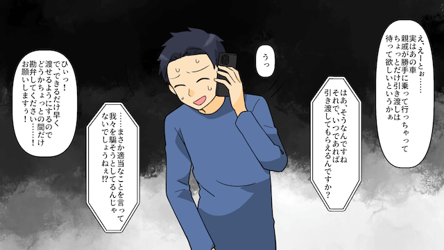 ディーラーから車の引き渡しの連絡がきていて、元夫は困り果てます。 しかし渡さない選択肢はなく、結局元夫は渋々車を引き渡すのですが…。