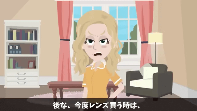 主人公は夫に離婚を突きつけ、夫と浮気相手の両方に慰謝料請求することを伝えました。 さらに主人公は「今度レンズ買うときは、その濁った目がまともに見えるようなオマエ自身のレンズ買えや!」と夫を怒鳴りつけたのです。