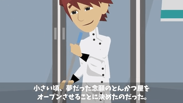 社長の息子のせいで働く気力がなくなった主人公は、会社を退職します。 そして、夢だったとんかつ屋をオープンさせることに決めました。