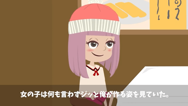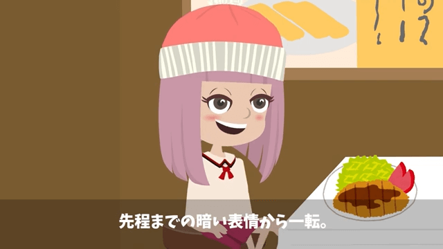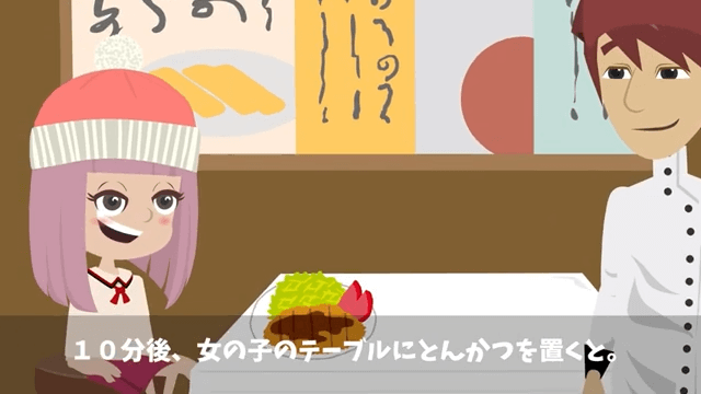 主人公は調理場から1番近い席に女の子を案内しました。 そして10分後、主人公が女の子のテーブルにとんかつを置くと、女の子の表情が一転したのです。