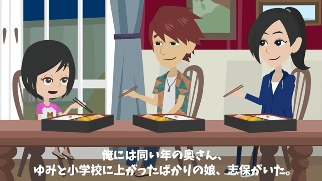 主人公には同い年の妻と小学校に入ったばかりの娘がいました。 大学在学中に交際していた妻とは就職してから2年後に結婚し、その2年後に娘が生まれたのです。
