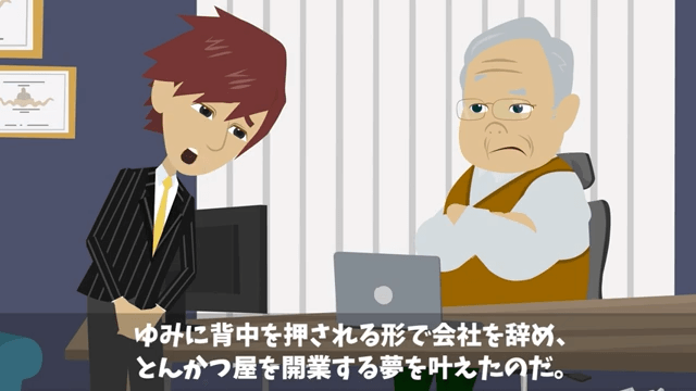 主人公は妻に背中を押される形で会社を辞めました。 そして、とんかつ屋を開業させる夢を叶えたのです。