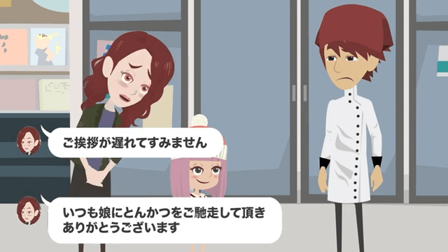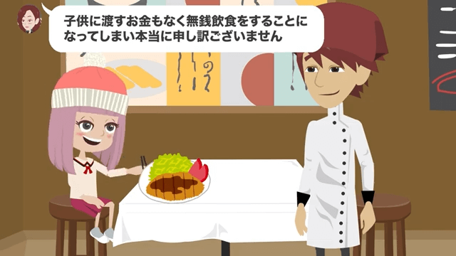 主人公がいつものように店の前で女の子を待っていると、女の子の母も一緒にやってきました。 女の子の母は「子どもに渡すお金もなく無銭飲食することになってしまい本当に申し訳ございません」と主人公に謝罪して…。