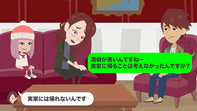 事情を聞いた主人公は「実家に帰ることは考えなかったんですか?」と女の子の母に尋ねます。 すると女の子の母は、両親が結婚に猛反対していたため、実家には帰ることができないと言いました。