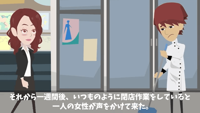 強い味方がいるわけでもない主人公は、ただ願うだけになってしまいます。 それから1週間後、主人公が閉店作業をしていると、女の子の母が声をかけてきました。