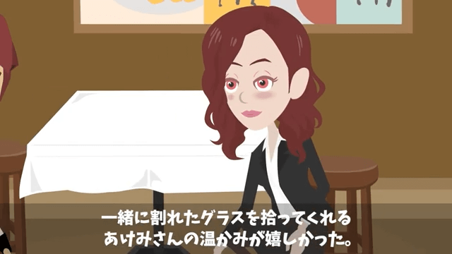今回は『廃業寸前の店に来店した無一文の少女にとんかつを奢ってあげた結果』を紹介します。 女の子の母から両親と一緒に住むことになったと報告され、安心した主人公。 するとそのとき、主人公は洗っていたグラスをうっかり落としてしまい…。