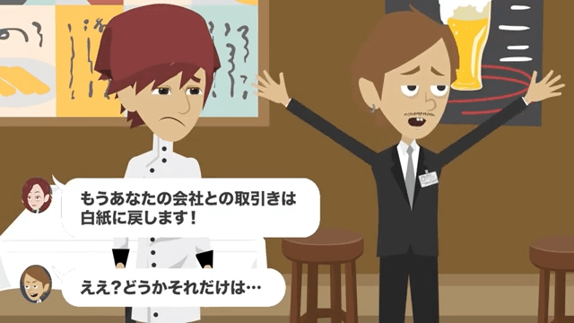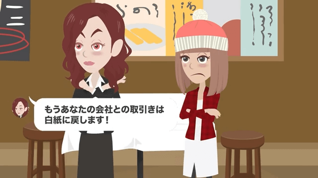 女の子の母は、社長の息子がずっと主人公を苦しめてきたことに激怒します。 そして女の子の母は「もうあなたの会社との取り引きは白紙に戻します!」と社長の息子に言いました。