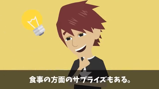 主人公が高級旅館のことを話すと、妻は「すごい!嬉しい!」と喜びました。 妻の笑顔を見た主人公は、もう計画は成功したようなものだと考えます。