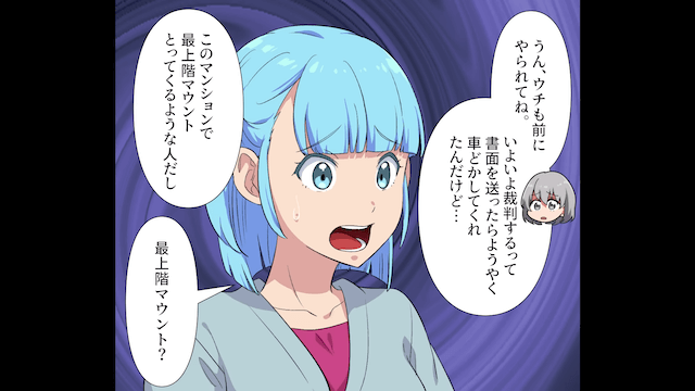 管理会社に電話をしても状況が変わらず、主人公夫婦は駐車場の解約を考え始めます。 そんなとき、他の住人も同じ被害に遭っていたことが判明。