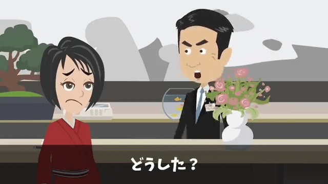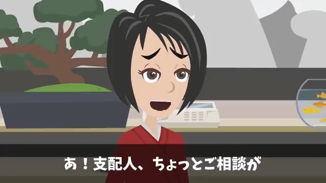 主人公は予想外の展開にしどろもどろになりつつも、仲居に相談します。 するとそこに支配人が現れたため、仲居が「あ!支配人、ちょっとご相談が」と声をかけました。