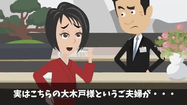 今回は『結婚記念日に高級旅館の支配人に追い出された話』を紹介します。 予約が取れていないことを知った主人公は、しどろもどろになりつつも仲居に相談します。 するとそこに支配人が現れ「どうした?」と仲居に尋ねました。