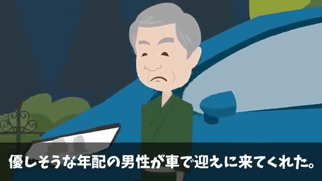 主人公が民宿に宿泊可能か聞いてみると、すぐに迎えにきてくれることになりました。 そして10分も経たないうちに年配の男性が主人公たちを迎えにきて…。