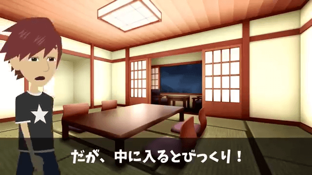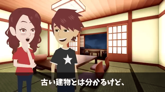 民宿の外観を見た主人公は、高級旅館とは雲泥の差だと感じました。 しかし中に入ると、どこもきれいでびっくりしてしまいます。