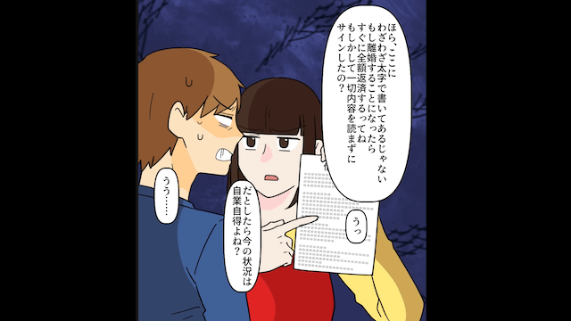 主人公が夫に「父親があなたでは子どもを幸せにできないでしょうしね」と告げると、夫は逆ギレして主人公の不妊体質を疑ってきました。 そんな夫の言葉に呆れた主人公は、夫に貸していた300万円の返済を要求します。