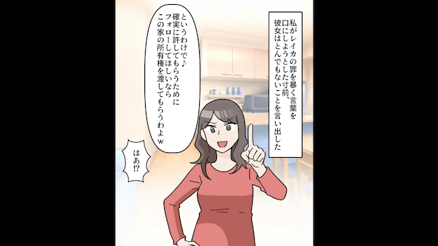 さらに女性は「確実に許してもらうためにフォローしてほしいなら、この家の所有権を渡してもらうわよ」と言ってきて…。