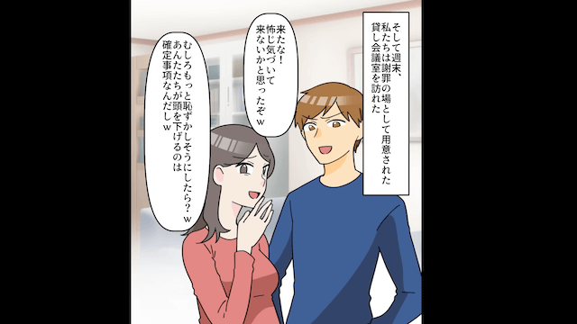 今回は『子どもが出来ず夫と離婚するも⇒後日産婦人科で再会した結果』を紹介します。 謝罪の場所と日時を主人公に伝え、イライラしながら帰っていった女性。 反撃のチャンスだと考えた主人公は、夫と一緒に準備を整えて…。