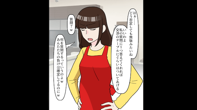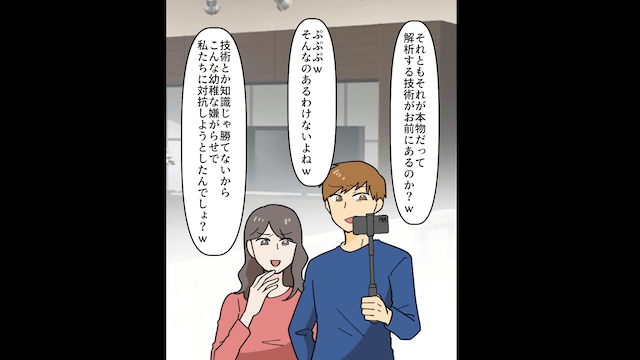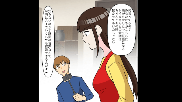 主人公たちとの話し合いから逃げた元夫と女性は、悔しい思いをして懲りずに悪巧みをします。 そして数日後、元夫と女性は自分たちが真の被害者だと配信で主張し、その場に呼び出した主人公を悪者扱いしました。
