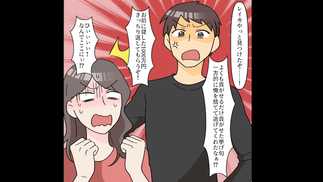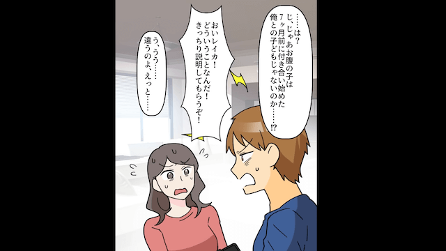主人公は元夫と女性に2人の馴れ初めを聞き、付き合い始めたのが7ヶ月前であることを知ります。 そして主人公が妊娠中の女性のお腹の大きさが出産直前の大きさであることを指摘すると、女性の裏切りに気づいた元夫は女性を責めました。