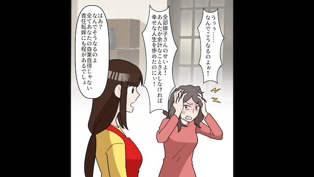 しかし女性は元夫に突き放され、男性にも借金の返済を要求され、主人公に責任転嫁をしたのでした。