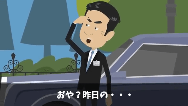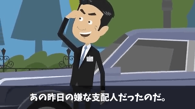 妻が険しい表情をしているため、指しているほうを見ると高級旅館の支配人がいました。 支配人が「おや?昨日の…」と言うため、主人公は「…どうも」と会釈します。