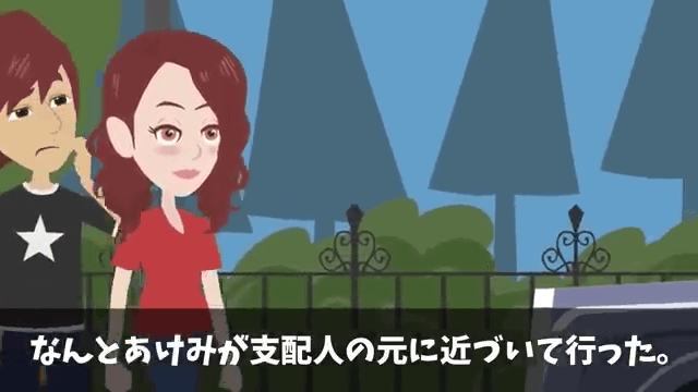 高級旅館の支配人はニヤニヤした表情で、主人公たちのほうを見ています。 そこで主人公がすぐに帰ろうとすると、妻が支配人のほうに近づいていきました。