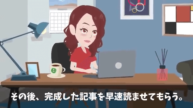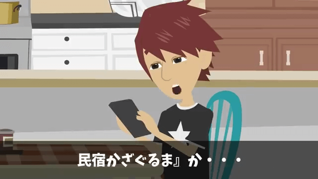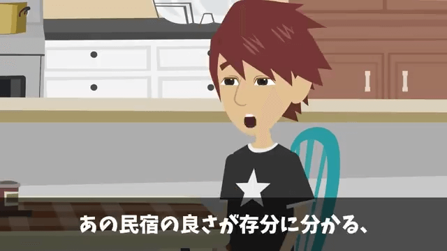 帰宅した妻は部屋にこもって民宿の記事を執筆します。 完成した記事を読んだ主人公は、民宿のよさが存分にわかると感心しました。