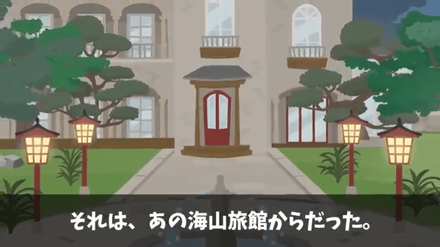 主人公はこれで民宿に客足が戻るだろうと安心します。 するとその後、妻のもとに高級旅館から連絡がありました。