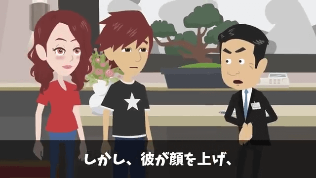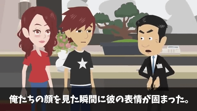 主人公たちが高級旅館に到着すると、慌てた様子で支配人がやってきました。 しかし、主人公たちの顔を見た瞬間に支配人の表情が固まります。