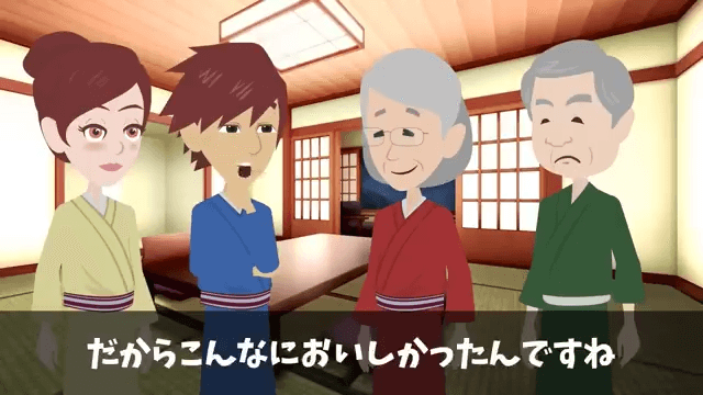 今回は『結婚記念日に高級旅館の支配人に追い出された話』を紹介します。 民宿の夫婦は、ほかの民宿が食材を卸す業者から契約を打ち切られてしまい、廃業に追いこまれてしまったことを主人公たちに明かします。 そして、この民宿が無事だったのは自分たちで農園を持っていたからだと説明しました。