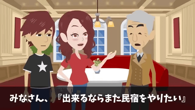妻はオーナーがお金を出して潰れた民宿を復活させるのはどうかと提案します。 そして、廃業した民宿の人たちが「できるならまた民宿をやりたい」と思っていることをオーナーに伝えました。
