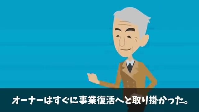 妻の提案を聞いたオーナーは「それは、名案です…!」と言い、すぐに事業復活に取り掛かりました。 そして、まずは高級旅館のせいで起こってしまったことを全員に謝って回ります。