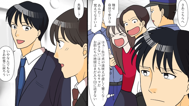 今回は『俺の上司の名前を婚姻届に書いた浮気妻の末路』を紹介します。 裏切った彼女と上司を追い詰め、完全勝利した主人公。 そして彼女と上司は社長にクビ宣告をされ、会社から追い出されたのでした。