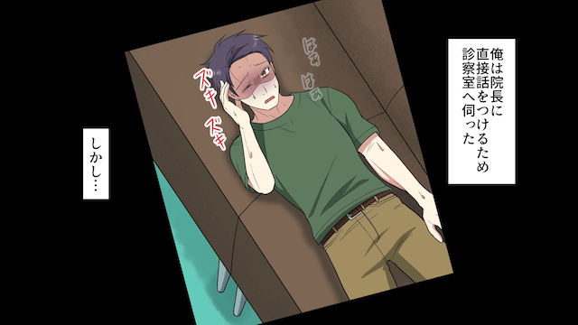 そしてついに5時間が経過し、限界を感じた主人公が診察室に行くと、院長に「お前を診てやるなんて言ったっけ〜?」と言われてしまい…。