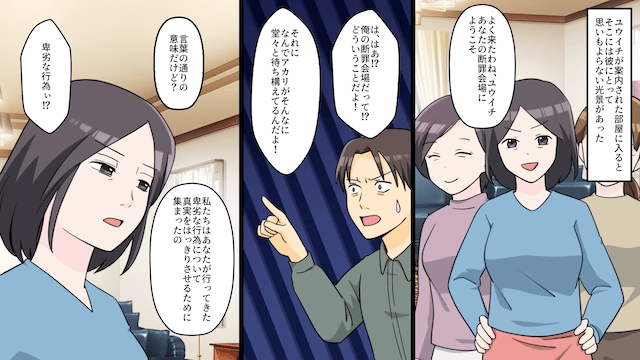 今回は『離婚した元夫「生活費なんて払うわけないだろ(笑)」⇒1週間後、断罪した結果』を紹介します。 近所の人から主人公の断罪の場に同席してほしいと言われた元夫。 ワクワクしながらその場へ向かうと、近所の人に「みんなあなたのことを待ちわびてますよ」と言われて…。