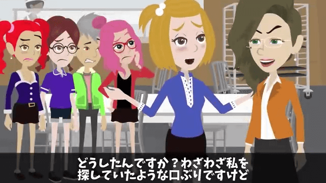 いやらしい笑顔を浮かべた教授が現れると、その場にいた全員の空気が凍ります。 そこで主人公が「わざわざ私を探していたような口ぶりですけど」と言うと、教授は「探していたなんてとんでもない」と否定しました。