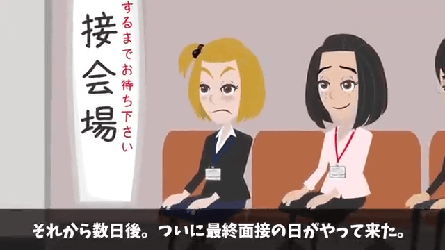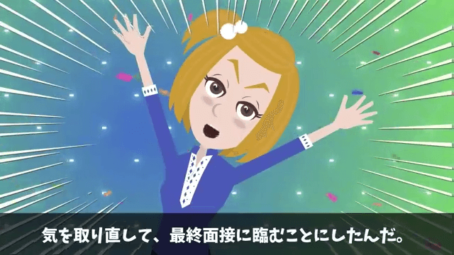 友人たちから励まされた主人公は、気を取り直して最終面接に臨むことにします。 それから数日後、ついに最終面接の日がやってきました。