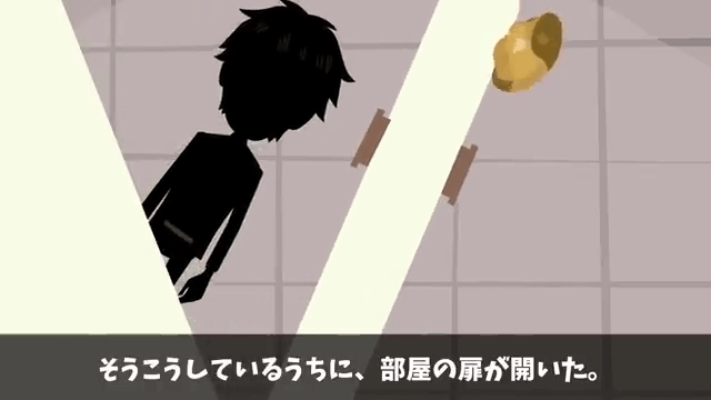 激怒した教授の父は、机を叩きながら主人公に食ってかかります。 すると部屋の扉が開き、主人公が「お父さん!早かったね!」と言いました。