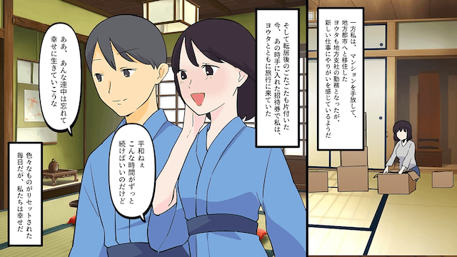 その後、逮捕されたママ友は自由のない生活を送るはめになり、主人公夫婦は招待券で旅行を楽しんだのでした。