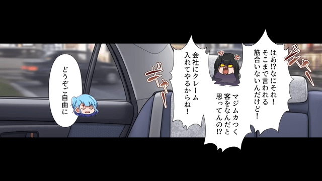 今回は『タクシーで逆ギレした客の末路』を紹介します。 タクシーの運転手は車内で飲食を禁止している理由を主人公に説明しました。 しかし何を言っても主人公が言い返してくるため、タクシーの運転手は「…マナーを教えてくれる人が周りにいなかったんですね。かわいそうに」と同情して…。