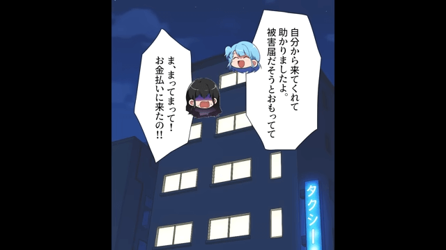 店を辞めさせられた主人公は、まずタクシー会社に向かいました。 そしてタクシーの運転手に、お金を払いにきたことを伝えます。
