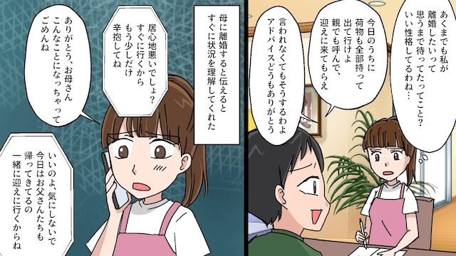 今回は『夫「今すぐ出てけ役立たず(笑)」妻「はい」直後、妻が高級車に乗って出ていった結果』を紹介します。 気まぐれに突撃訪問してくる義母に悩んでいた主人公。 義母は主人公の行動について、なにかと文句をつけてきて…。 家計が厳しく、主人公が「正社員で働いてもいい?」と夫に相談すると、夫と義母は「貯金ができないのはあなたの工夫が足りないからよ!」と主人公を責めてきました。 そんな2人の態度に限界を感じた主人公は離婚を突きつけ、家族に迎えにきてもらうことに。 そして30分後、兄が運転する高級車が到着すると、夫と義母は「どうしてこんな高そうな車に?」と唖然としたのでした。