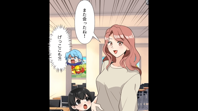 主人公が子どもたちとフードコートにいると、また友人から声をかけられました。 そして友人は自分の娘を主人公に預けると、そのまますぐに立ち去ってしまったのです。