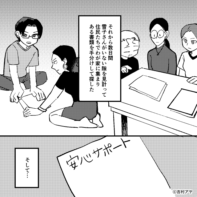 それから数日間、隣人が家にいない隙を見計らって、主人公たちはある書類を探し出し…。