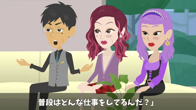 主人公が彼女に「今日はよろしくね」と伝えると、彼女は「うん」とうなずきました。 そして一同が席につくと、義父は「普段はどんな仕事をしてるんだ?」と主人公に尋ねてきて…。