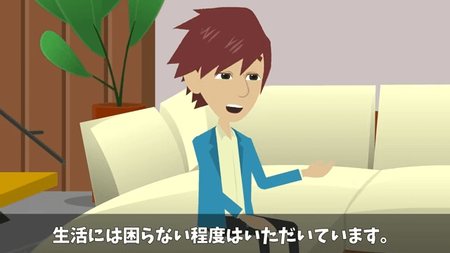 義母から給料について聞かれた主人公は「生活には困らない程度はいただいています」と答えました。 すると義父が「生活に困らない程度?結婚するんだろ、それで大丈夫なのか?」と主人公に尋ねてきて…。