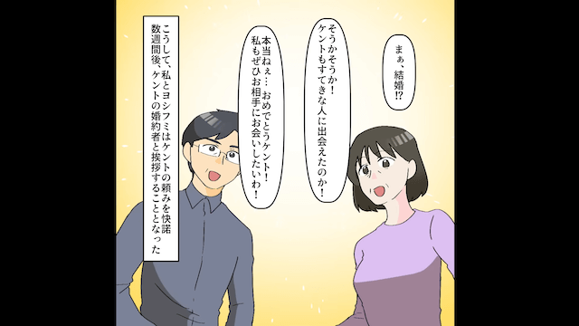 主人公が「時間でいえばあなたのほうが私よりはるかに余裕があるわよね?」と言うと、息子は家事に協力することを約束しました。 そして数ヶ月後、夫が単身赴任から帰ってきたタイミングで、息子が結婚報告をしてきたのです。