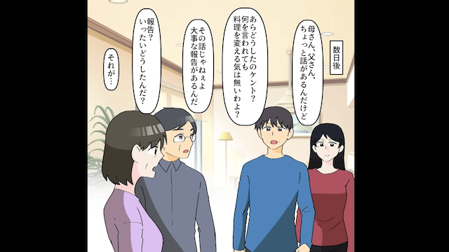 今回は『息子夫婦が「親はATM(笑)」と見下してきた話』を紹介します。 健康志向の生活を始めてから数日後、息子に「ちょっと話があるんだけど」と言われた主人公夫婦。 話を聞くと、息子の妻の妊娠が判明したようで…。