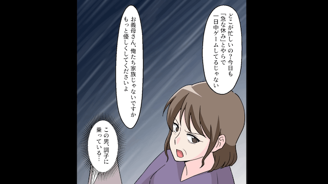 今回は『1日中ゲームをしている娘婿を捨てた結果』を紹介します。 妊娠中で動けない娘の罪悪感を利用し、調子にのる娘婿。 娘婿は家事分担を求める主人公に「俺も仕事忙しいんす、家事までやらされたら体壊しちゃいますよ〜?」と言ってきて…。